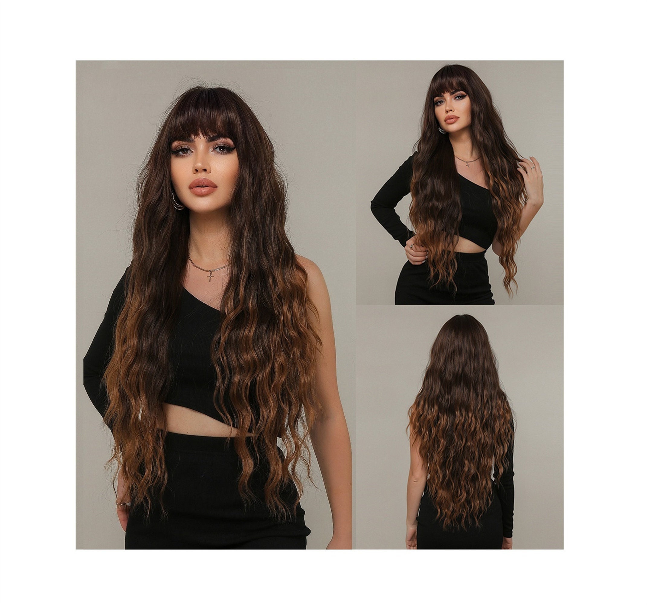 Long Curly Brown Wig Etsy